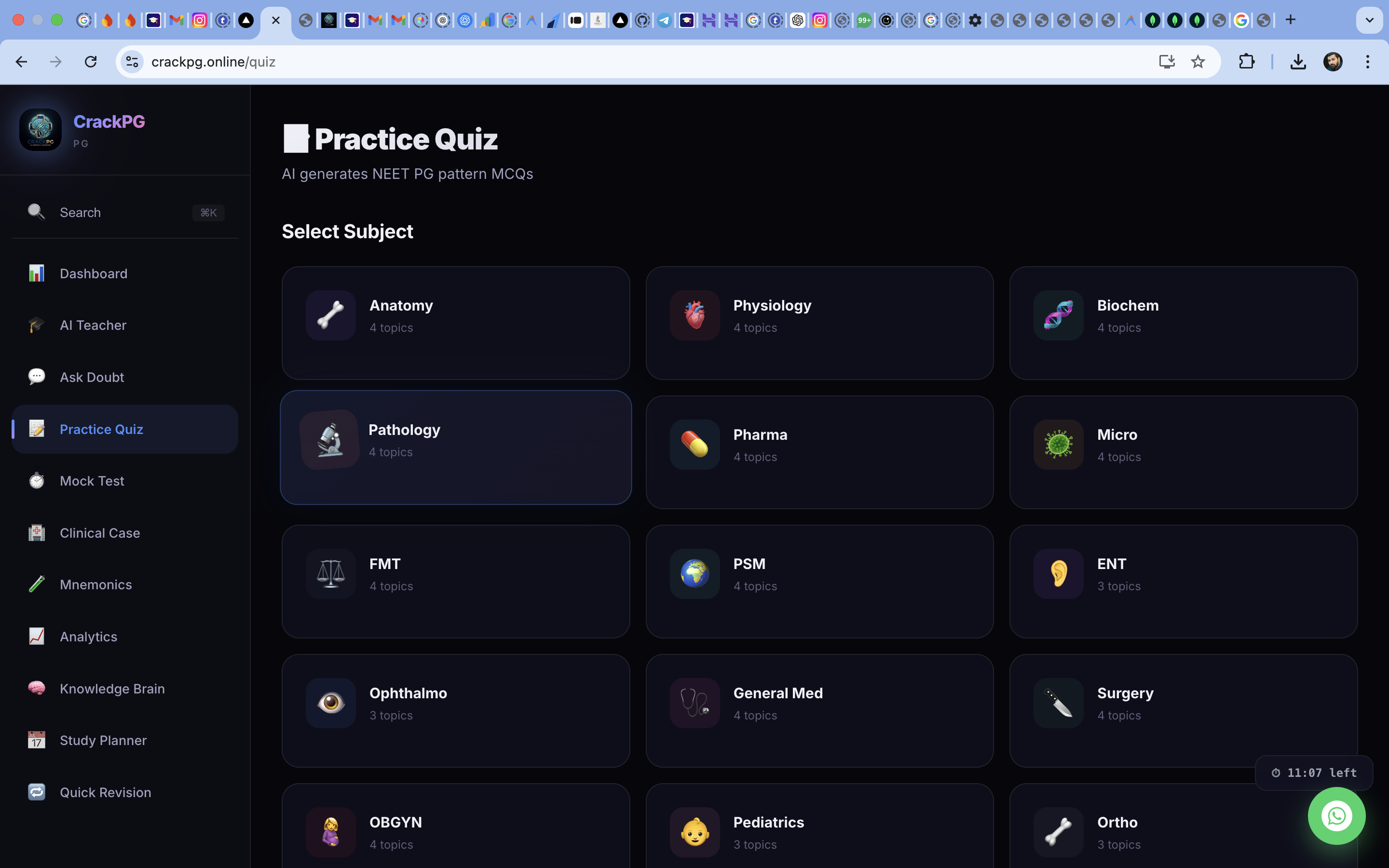Preparing for NEET PG shouldn’t cost ₹40,000 or require endless video lectures. CrackPG uses AI to help you learn faster, practice smarter, and track your progress.